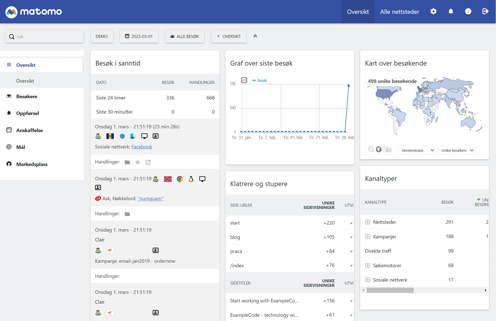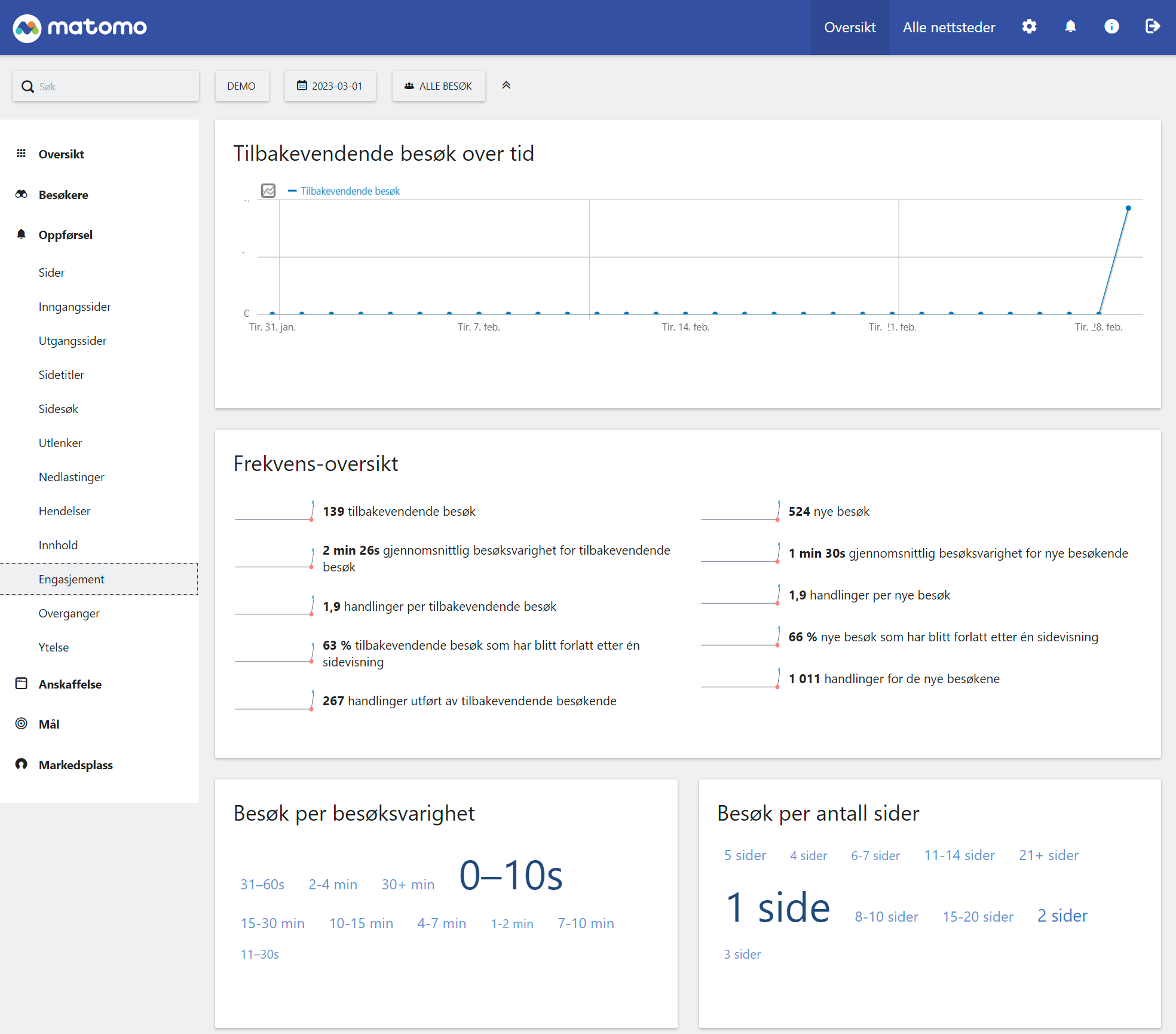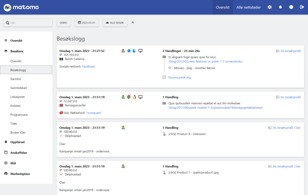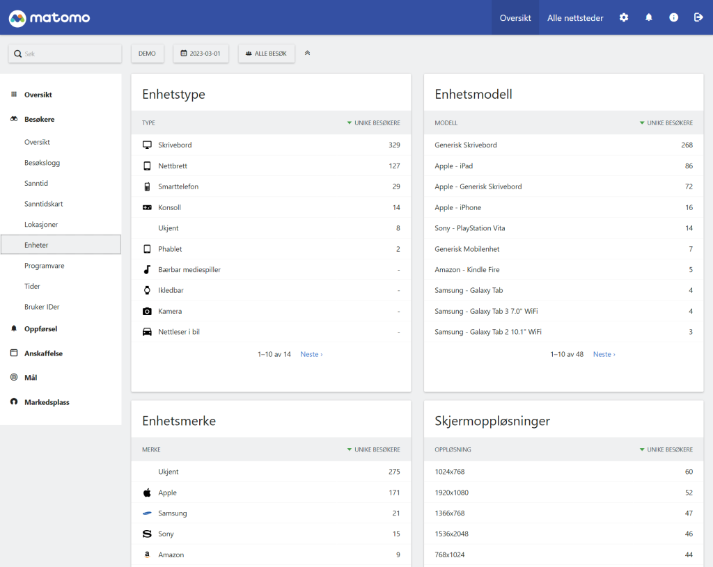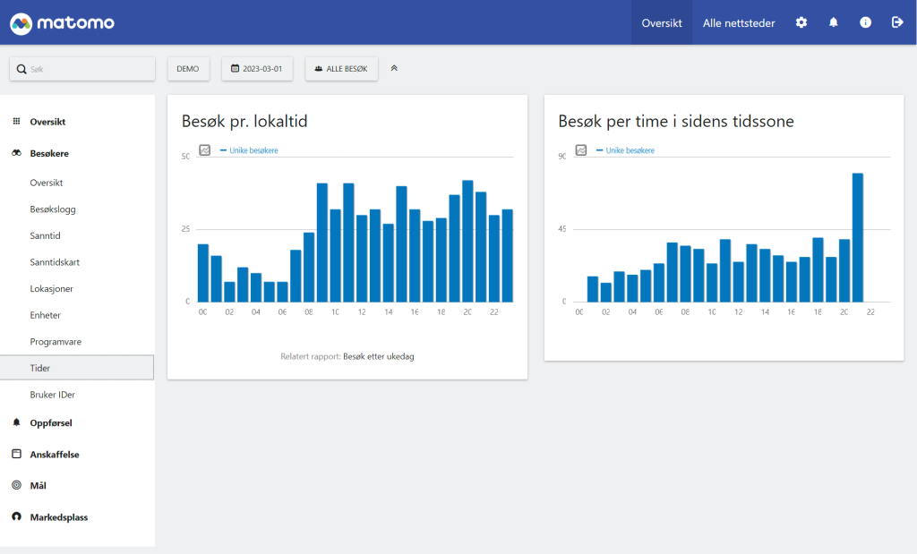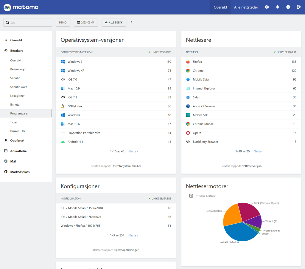 Vi tilbyr Matomo Analytics som en tjeneste på våre lynraske servere her i Oslo/Norge. Matomo kan også kjøpes som en skytjeneste direkte fra Matomo, men vi kan tilby god pris og nærhet til nettsidene her i Norge. I tillegg kan vi fakturere via EHF og forekle administrasjonen. Og ikke minst tilbyr vi norsk support og grensesnitt på norsk. Vi har ingen bindingstid og man kan teste det helt gratis hos oss før du bestiller.