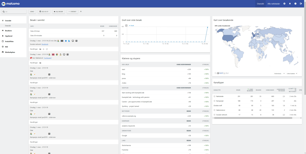 Matomo Analytics – utviklet i Europa – er laget med innebygget fokuks på å oppfylle GDPR og personvernet til brukeren. Dette inkluderer at dine besøkende forblir anonyme og at ingen personvernopplysninger vil kunne bli lekket. Den har stort sett de samme funksjonene som Google Analytics og man kan også integrere løsningen opp mot mange ulike systemer.