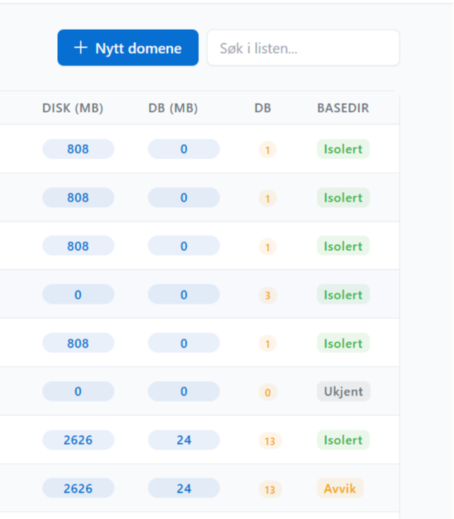 Som administrator eller server-eier, så har du oppdatert oversikt med instant-søk på domener for hurtig tilgang og oversikt. Bruker siste moderne teknologi for å gi dynamisk innsikt.